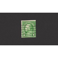 Kasowany znaczek, na którym widnieje Benjamin Franklin, amerykański polityk, drukarz, uczony i filozof, jeden z ojców założycieli Stanów Zjednoczonych.