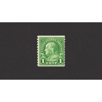 Znaczek, na którym widnieje Benjamin Franklin, amerykański polityk, drukarz, uczony i filozof, jeden z ojców założycieli Stanów Zjednoczonych.