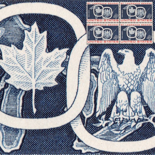 Znaczek w czwórce upamiętniający otwarcie Drogi Wodnej Świętego Wawrzyńca, śródlądowego szlaku wodnego w Kanadzie i w USA. Szlak daje statkom morskim możliwość dopłynięcia do wszystkich Wielkich Jezior z Atlantyku, przez Rzekę Świętego Wawrzyńca.