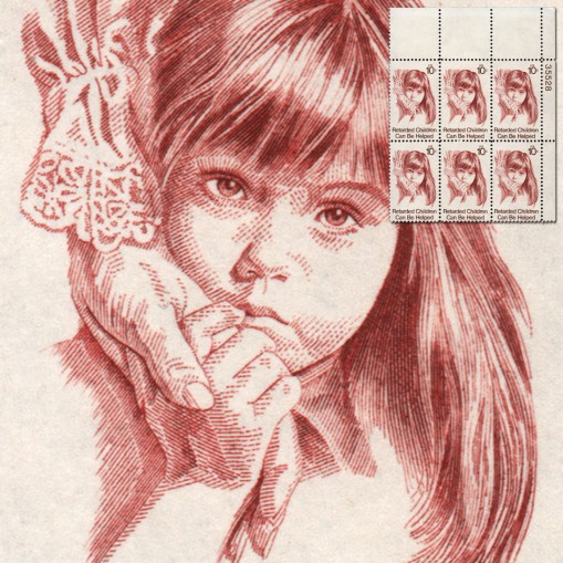 Znaczek w szóstce z marginesem arkusza zawierającym numer kontrolny matrycy [ang. plate block].