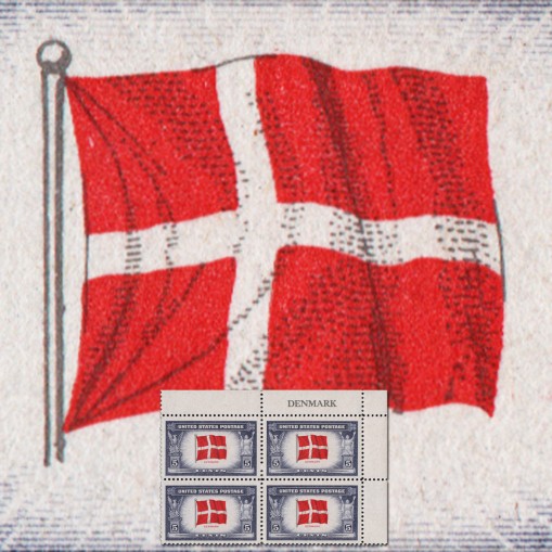 Znaczek w czwórce z marginesem arkusza zawierającym numer kontrolny matrycy [ang. plate block].