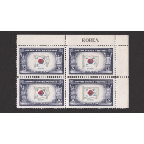 Znaczek w czwórce z marginesem arkusza zawierającym numer kontrolny matrycy [ang. plate block].