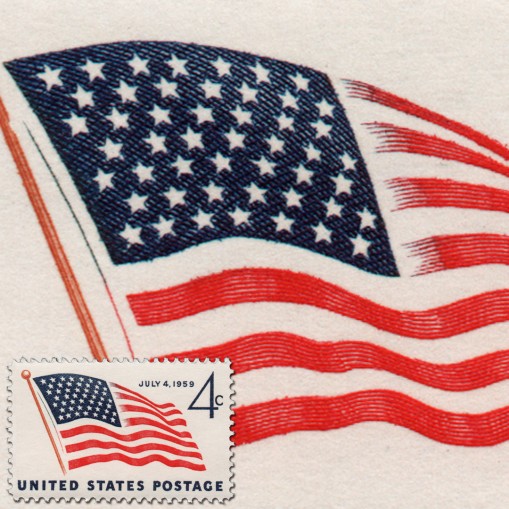 Znaczek upamiętniający inaugurację nowej flagi Stanów Zjednoczonych z 49 gwiazdkami.