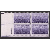 Znaczek w czwórce z marginesem arkusza zawierającym numer kontrolny matrycy [ang. plate block].