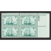 Znaczek w czwórce z marginesem arkusza zawierającym numer kontrolny matrycy [ang. plate block].