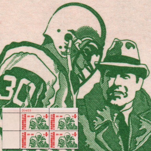 Znaczek upamiętnia stulecie rozgrywek międzyuczelnianych w fulbolu amerykańskim.