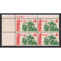 Znaczek w czwórce z marginesem arkusza zawierającym numer kontrolny matrycy [ang. plate block].