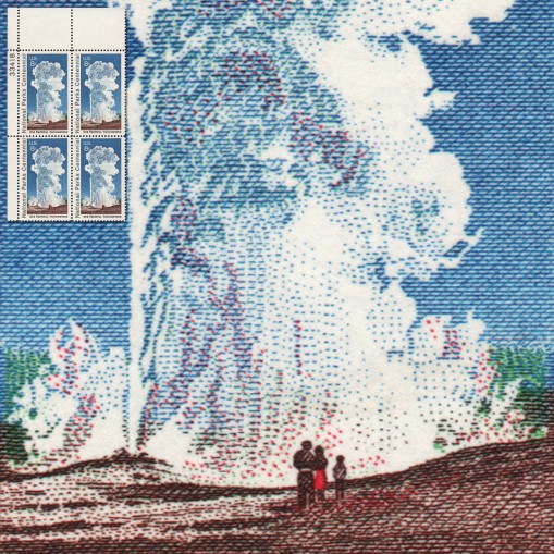 Na znaczku widnieje gejzer Old Faithful w Parku Narodowym Yellowstone.