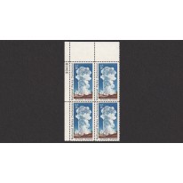 Znaczek w czwórce z marginesem arkusza zawierającym numer kontrolny matrycy [ang. plate block].