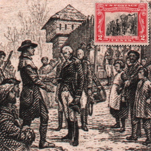 Znaczek upamiętniający 150. rocznicę zdobycia Vincennes przez milicję pod dowództwem George’a Rogersa Clarka podczas wojny o niepodległość Stanów Zjednoczonych. Osłabiło to wpływy brytyjskie na Terytorium Północno-zachodnim, jak wówczas nazywano dzisiejsze stany Ohio, Indiana, Michigan, Illinois i Wisconsin.