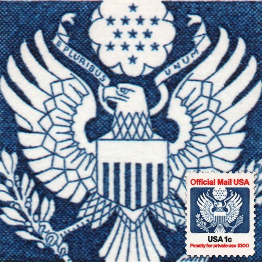 Znaczek urzędowy, na którym przedstawiono godło Stanów Zjednoczonych Ameryki.
