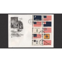 Seria na kopercie pierwszego dnia obiegu, na znaczkach której widnieją następujące historyczne flagi używane w Stanach Zjednoczonych w XVIII wieku: