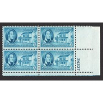 Znaczek w czwórce z marginesem arkusza zawierającym numer kontrolny matrycy [ang. plate block].