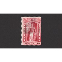 Na znaczku widnieje rzymska personifikacja sprawiedliwości Iustitia.