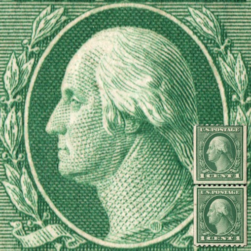 Znaczek w parce, na którym widnieje pierwszy prezydent Stanów Zjednoczonych Jerzy Waszyngton.