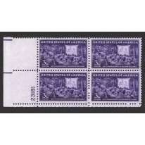 Znaczek w czwórce z marginesem arkusza zawierającym numer kontrolny matrycy [ang. plate block].