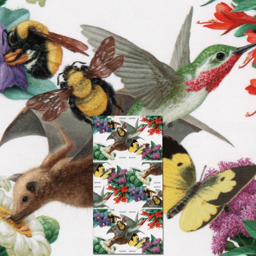 Seria znaczków samoprzylepnych w arkuszu, na których widnieją gatunki odpowiedzialne za zapytanie roślin: