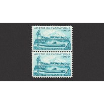 Znaczek w parce upamiętniający 50. rocznicę wyprawy na geograficzny biegun północny Roberta Edwina Peary’ego oraz przepłynięcie pod biegunem północnym łodzi podwodnej USS „Nautilus”.