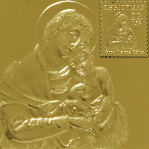 Złota replika znaczka wydanego na Boże Narodzenie.