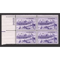 Znaczek w czwórce z marginesem arkusza zawierającym numer kontrolny matrycy [ang. plate block].