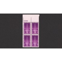 Znaczek w czwórce z marginesem arkusza zawierającym numer kontrolny matrycy [ang. plate block].