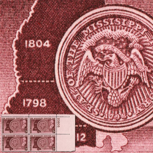 Na znaczku widnieje mapa i pieczęć stanu oraz Winthrop Sargent, pierwszy gubernator Missisipi.