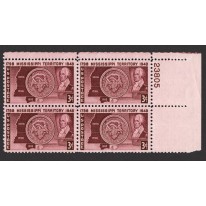 Znaczek w czwórce z marginesem arkusza zawierającym numer kontrolny matrycy [ang. plate block].