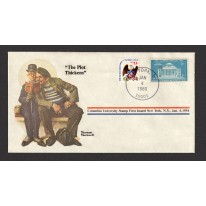 Znaczek na kopercie (przedstawiający główny gmach uniwersytetu w Columbii) został wydany 4 stycznia 1954 roku, razem z właściwą kopertą FDC. Później, w 1979 roku, wydano kolejną kopertę (tutaj oferowaną) z tym samym znaczkiem, na której widniała komplementarna ilustracja Normana Rockwella, żartobliwie uzupełniająca tematykę edukacji bądź czytania książek generalnie. Oryginalny tytuł tej koperty w języku angielskim - „The Plot Thickens" - to gra słów, bowiem „plot" oznacza fabułę, zaś cały zwrot „the plot thickens" to idiom używany wówczas, gdy dana sytuacja zaczyna się komplikować.