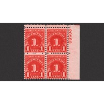 Numeryczny znaczek dopłaty o nominale 1 centa w czwórce.