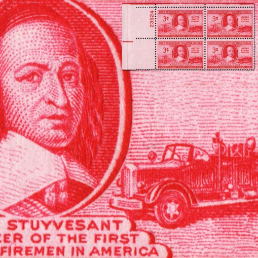 Na znaczku widnieją wczesne wozy strażackie i Peter Stuyvesant, dyrektor generalny Nowej Holandii w latach 1647-1664 i założyciel amerykańskiej ochotniczej straży pożarnej.