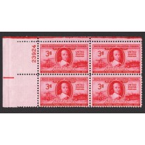 Znaczek w czwórce z marginesem arkusza zawierającym numer kontrolny matrycy [ang. plate block].