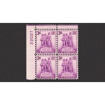 Znaczek w czwórce z marginesem arkusza zawierającym numer kontrolny matrycy [ang. plate block].