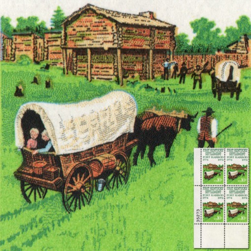 Na znaczku widnieje pierwsza osada w Kentucky - Fort Harrod.