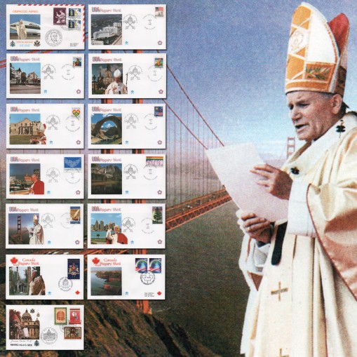 Michel: 1034, 1058 (Kanada), 1738, 1856-1857, 1862, 1864, 1881-1882, 1939, 1949 (USA), 486, 512, 628, 658, 665, 680, 858 (Watykan)