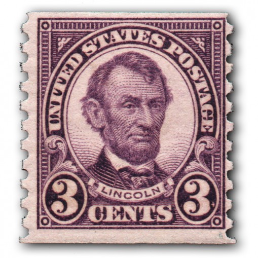 Znaczek, na którym widnieje Abraham Lincoln, 16. prezydent Stanów Zjednoczonych.