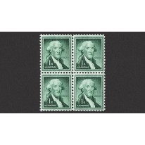 Znaczek w czwórce, na którym widnieje George Washington, pierwszy prezydent Stanów Zjednoczonych Ameryki.