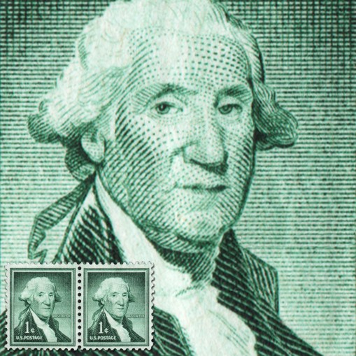 Znaczek w parce, na którym widnieje George Washington, pierwszy prezydent Stanów Zjednoczonych Ameryki.