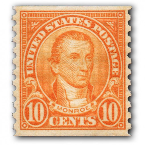 Znaczek, na którym widnieje James Monroe, 5. prezydent Stanów Zjednoczonych.