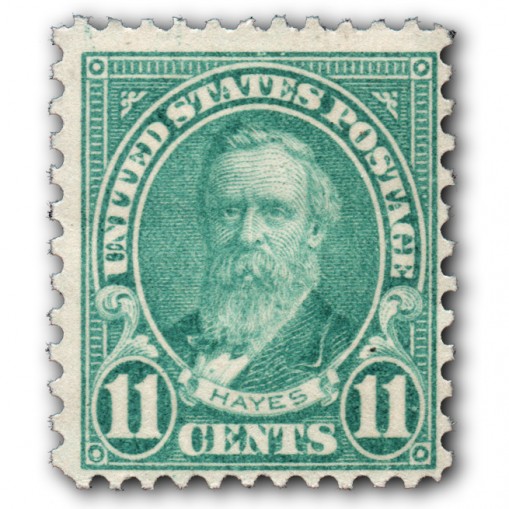 Znaczek, na którym widnieje Rutherford Hayes, 19. prezydent Stanów Zjednoczonych.