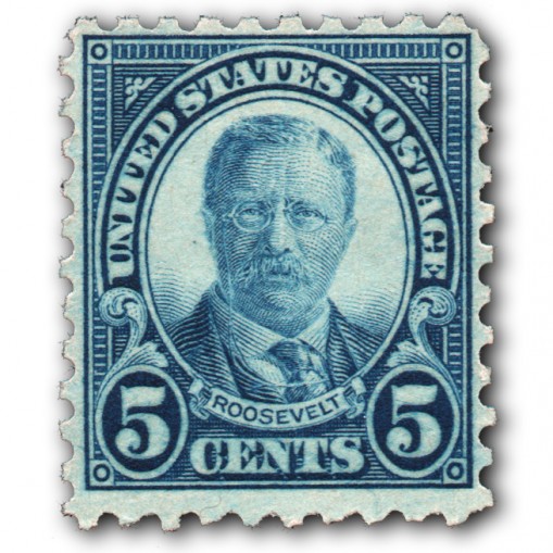 Znaczek, na którym widnieje Theodore Roosevelt, 26. prezydent Stanów Zjednoczonych.
