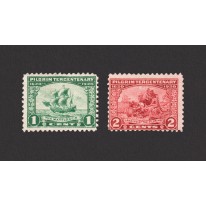 Na znaczkach widnieją kolejno żaglowiec „Mayflower” i przybycie na półwysep Cape Cod.