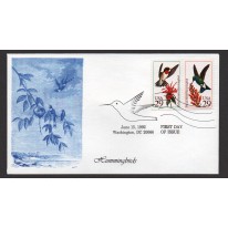Seria na dwóch kopertach pierwszego dnia obiegu (dwa znaczki na jednej kopercie i trzy znaczki na drugiej). Na znaczkach widnieją następujące gatunki kolibrów: