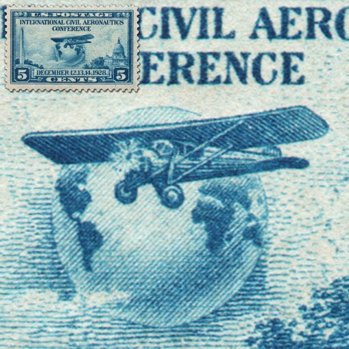 Znaczek z serii upamiętniającej konferencję na temat lotnictwa cywilnego w Waszyngtonie oraz 25. rocznicę pierwszego lotu braci Wright.