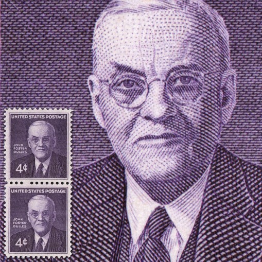 Znaczek w parce upamiętniający amerykańskiego polityka i sekretarza stanu imieniem John Foster Dulles.