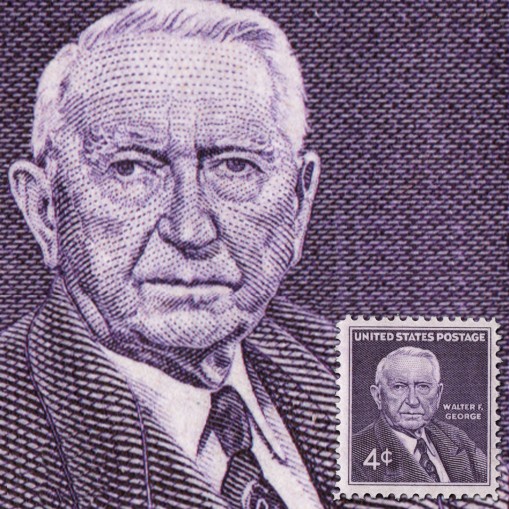 Znaczek upamiętniający amerykańskiego polityka i senatora imieniem Walter F. George.