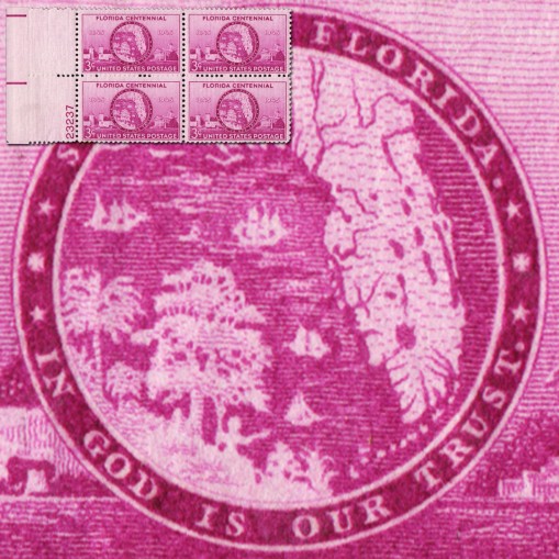 Na znaczku widnieje brama w mieście St. Augustine, pieczęć stanowa i budynek rządowy w stolicy stanu Tallahassee.