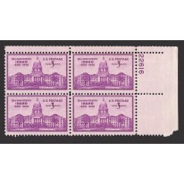 Znaczek w czwórce z marginesem arkusza zawierającym numer kontrolny matrycy [ang. plate block].