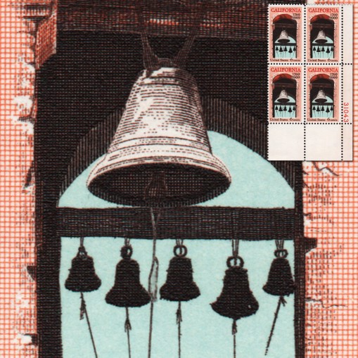 Na znaczku widnieją dzwony na dzwonnicy Mission Carmel, głównej siedzibie misji zakonnika imieniem Junípero Serra, założyciela San Francisco.