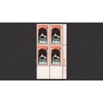 Znaczek w czwórce z marginesem arkusza zawierającym numer kontrolny matrycy [ang. plate block].