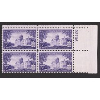 Znaczek w czwórce z marginesem arkusza zawierającym numer kontrolny matrycy [ang. plate block].